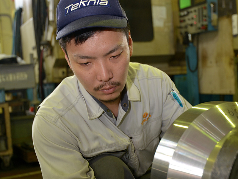 高校を卒業してから、製造工場や電気通信の仕事に携わってきました。現在は愛西工場で、工作機械に使われる金属部品の旋盤加工や加工機械のプログラミングを行っています。